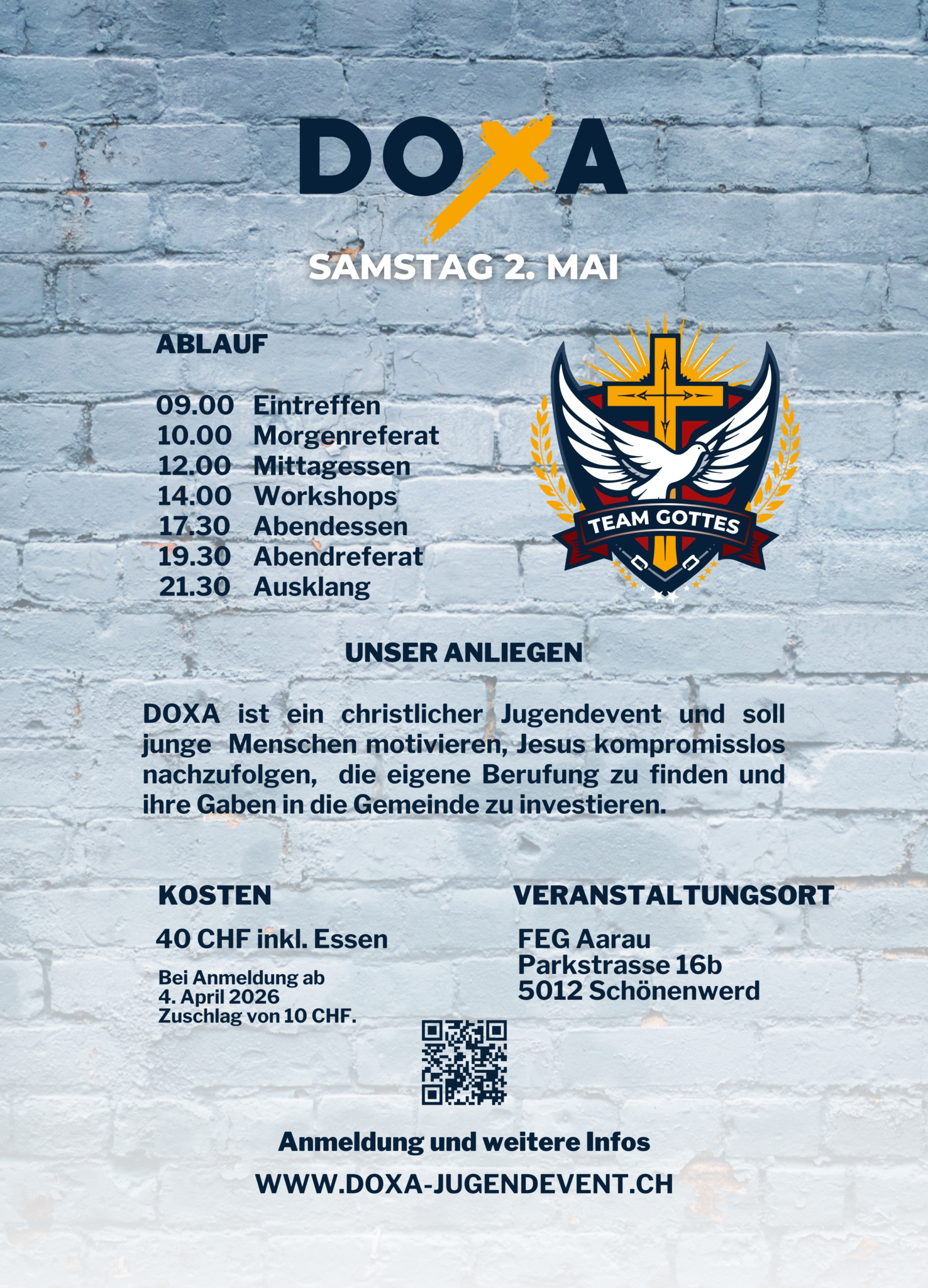 Deine Gemeinde – manchmal ist sie toll, manchmal gefällt es dir nicht so, manchmal ist es anstrengend. Und manchmal fragst du dich: Weshalb soll ich dort hingehen? Am Doxa 2026 wollen wir miteinander darüber staunen, was die Gemeinde ist und wofür sie da ist. Spoiler: Die Gemeinde ist nicht einfach da, damit es dir gefällt, sie ist für viel mehr da – sie ist ein Team Gottes. Und du gehörst zu diesem Team. Willst du mehr wissen? Dann komm vorbei, tanke tolle Theologie und geniesse die Gemeinschaft und vor allem: Lass dich von der weltweiten und von deiner eigenen Gemeinde – dem göttlichen Team – neu begeistern.